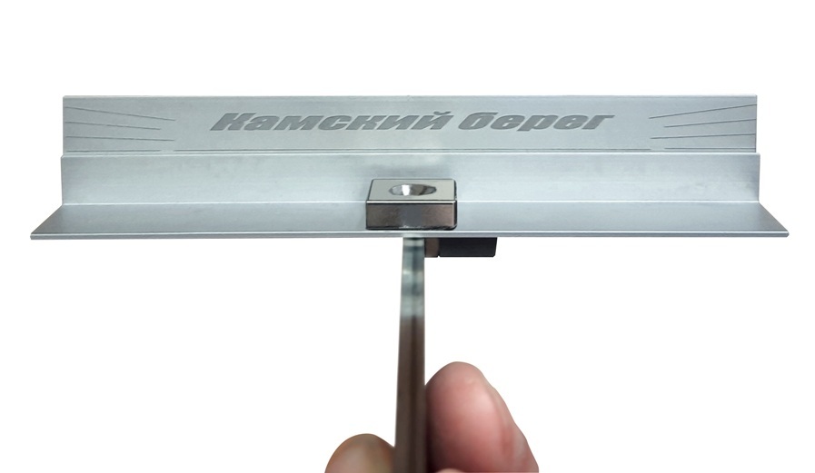 Представляет собой две пластины, одна из которых крепится на кромку лезвия, а вторая на боковую плоскость. Позволяет выявить смещение центра желобка относительно оси лезвия, разную высоту боковых кромок.